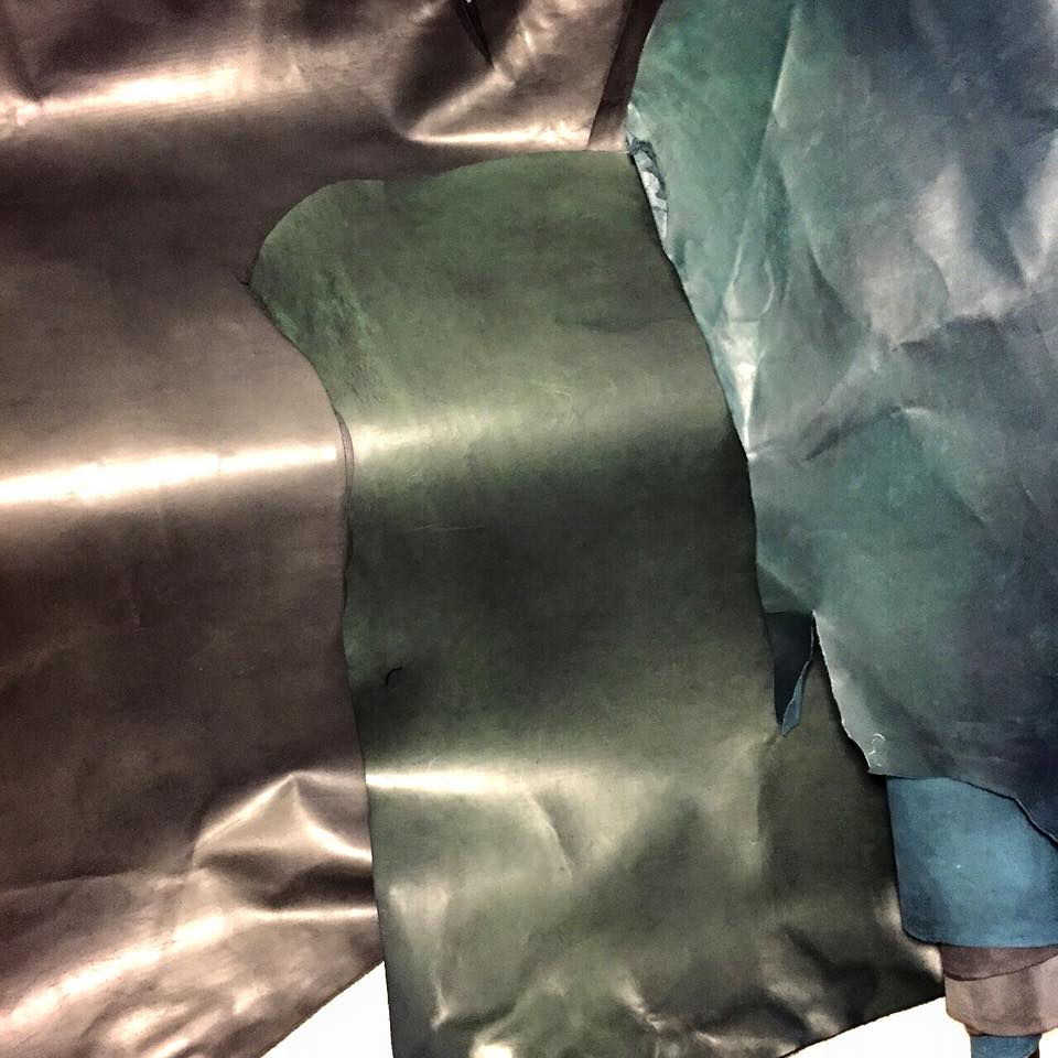 染色したホースレザーを鈴鹿墨と呼ばれる高級墨で染めあげた一品。